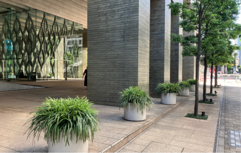 豊富な導入実績により、街で見かけることも多いトーシンコーポレーションのプランター。堅牢なGRC、軽量なFRPなど、さまざな施工環境にも対応できる素材と、空間に溶け込みながらもしっかりと雰囲気を演出するデザイン。多様なニーズに対応する豊富なアイテム数で、イメージどおりの緑をあらゆる空間に届けます。