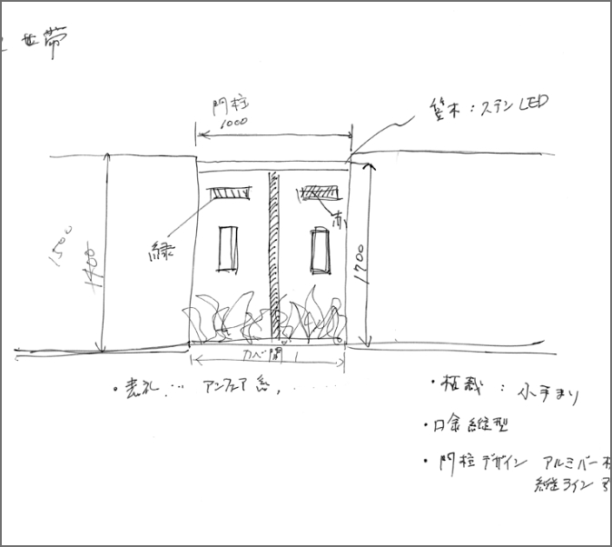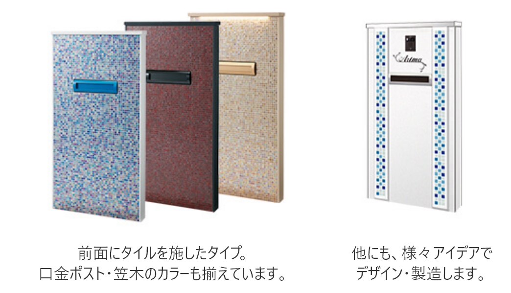門柱にお好みのタイル・石材などを貼ることができます。メーカー名・品番・レイアウトをご確認の上、ご要望をお伝えください。