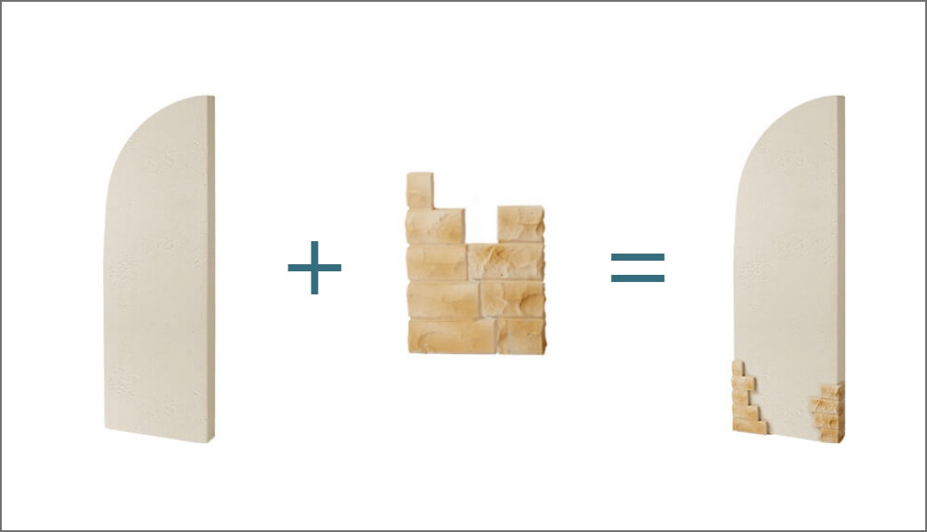 様々な仕上げ方法が可能です。タイルや石材調仕上げ材などの貼り物もご指定いただけます。造作と同等の仕上げを行い乾式施工のため、工期短縮が可能です。