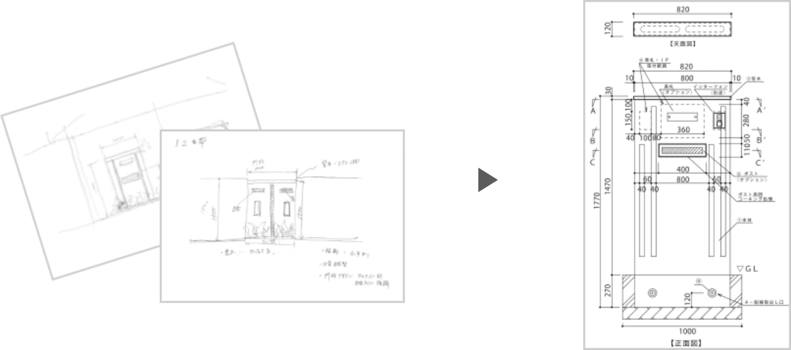 既製品の門柱をご要望のカラー・仕上げにいたします。トーシンの標準色のほか、特色にも対応します。