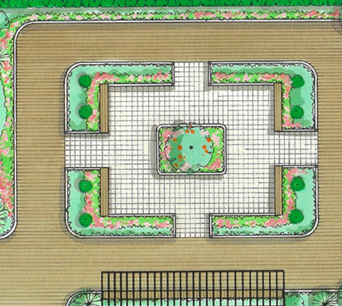 アーバンスモールガーデンは緑の景観を演出するとともに、植栽の保護を兼ねたプランです。緑陰となる樹木や四季を彩る植物が街に潤いをもたらし、人が集う空間を演出します。