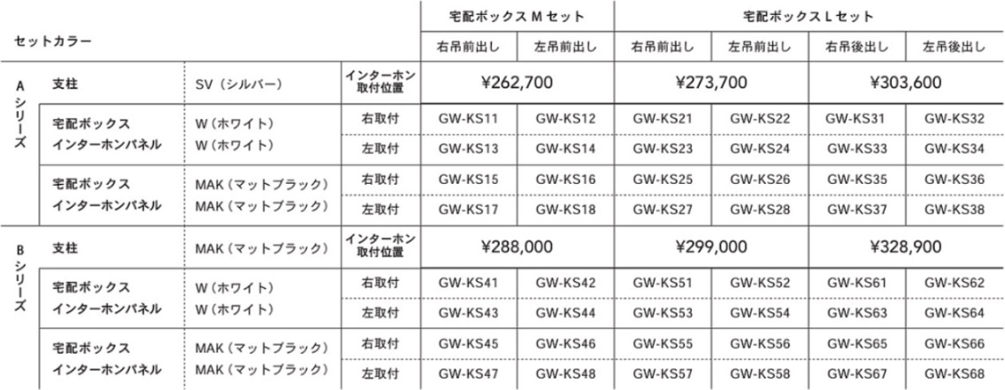 Aシリーズ(GW-KS21) 支 柱 |シルバー 宅配ボックス |NボックスL(前出し) インターホンパネル|ホワイト インターホン右取付