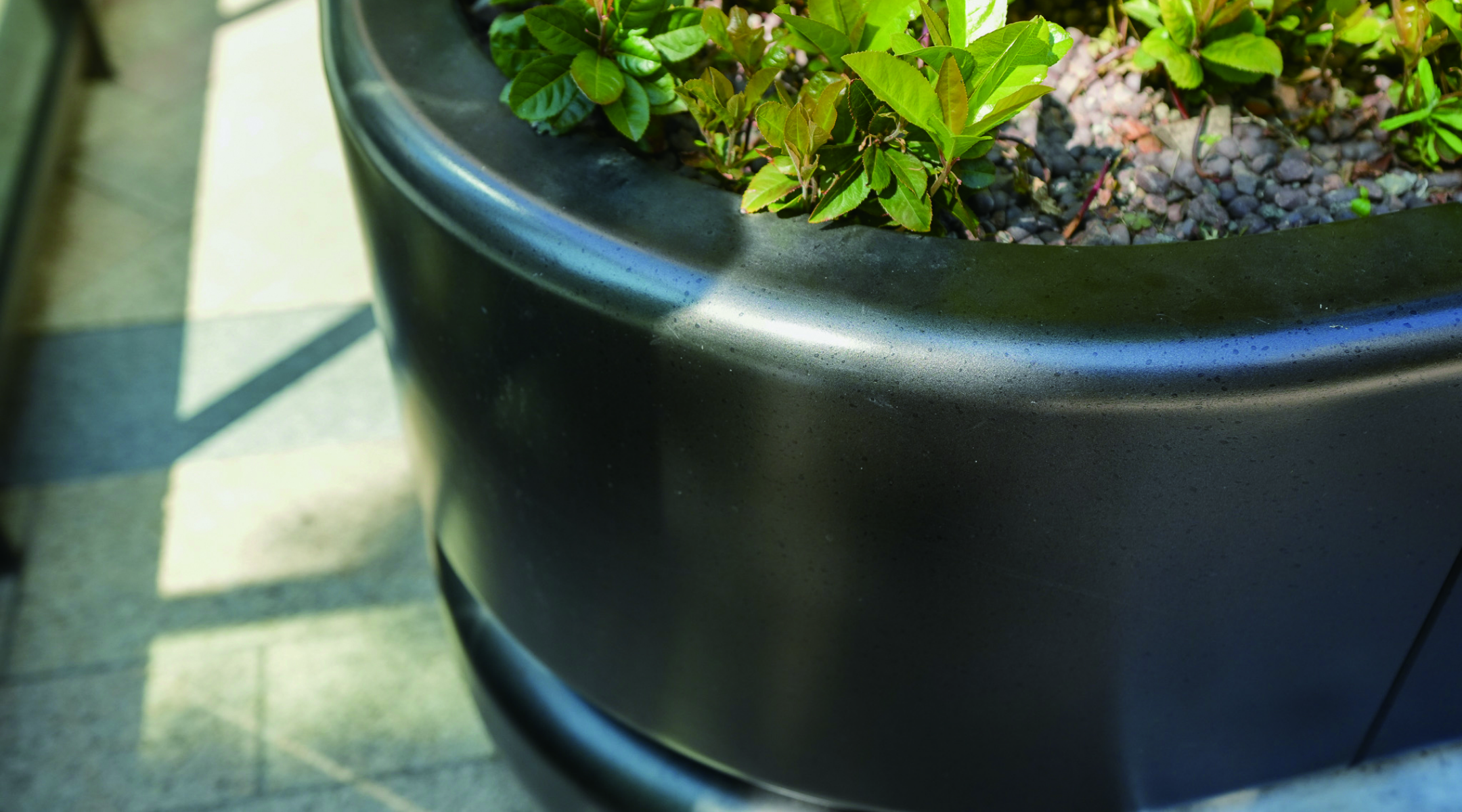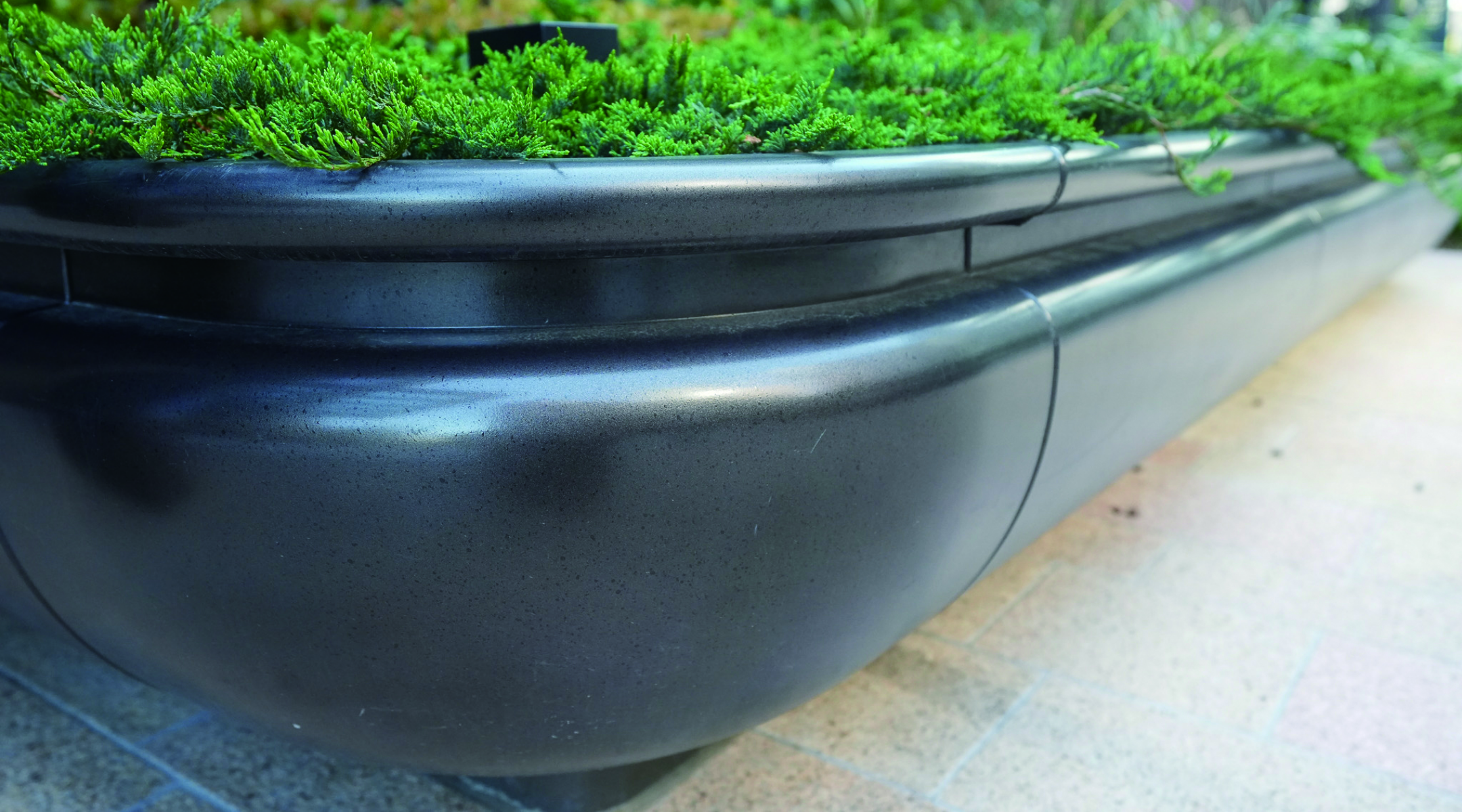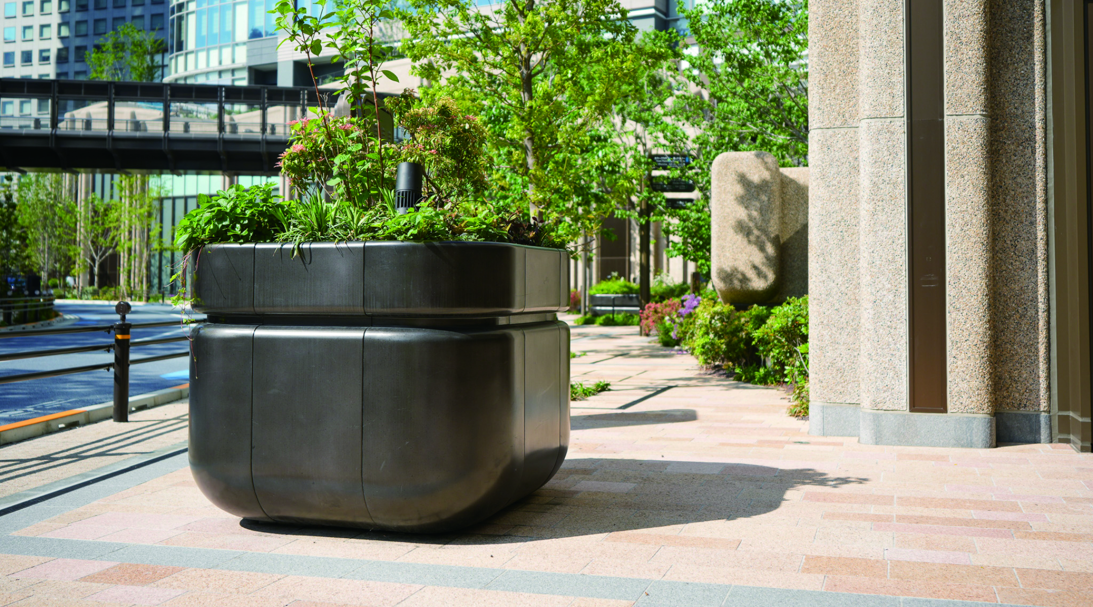 最先端のランドスケープにアクセントとなる特注仕様の緑化パネルを設計。